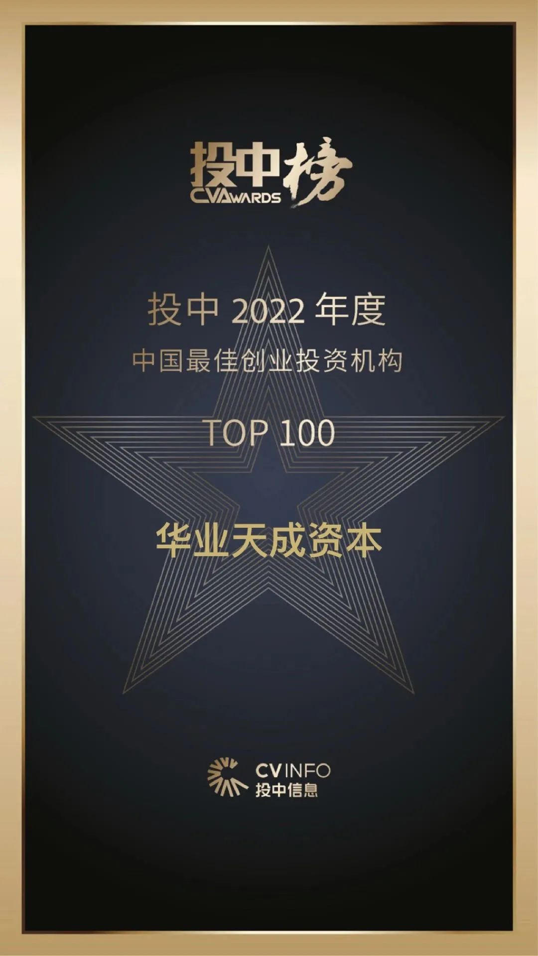华业天成资本荣获投中『2022 年度最佳创业投资机构TOP100』等多个奖项